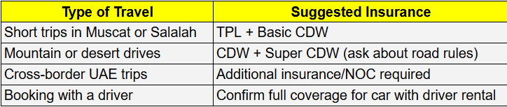 car rental insurance in oman